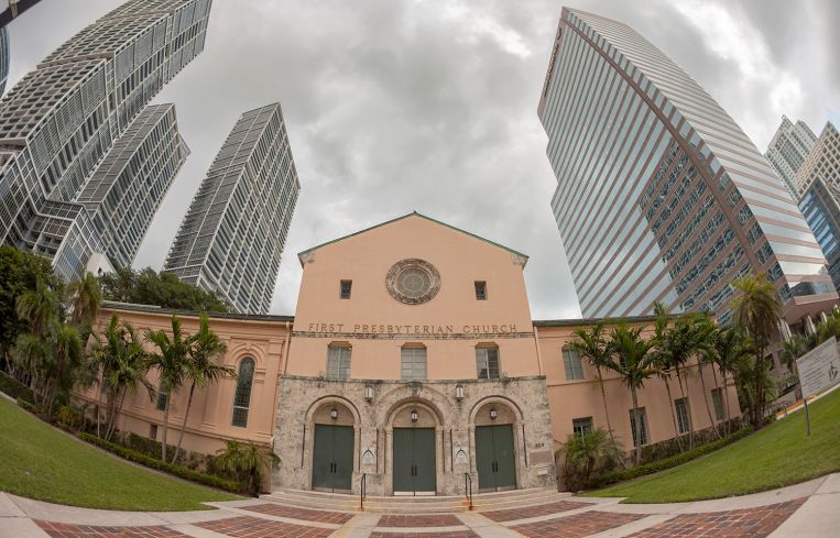 One of South Florida’s biggest pending sales of a church property would lead to construction of a high-rise condominium in the bayfront backyard of First Miami Presbyterian Church, at 609 Brickell Avenue in Miami. Key International and 13th Floor Investments have offered $240 million for the church’s land on Biscayne Bay for a condo tower project that would preserve the 65-year-old church building that faces Brickell Avenue.