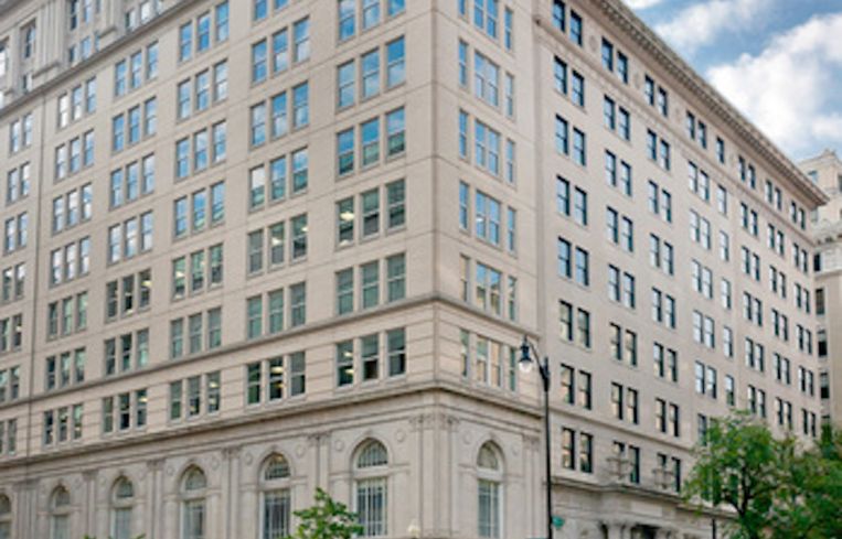The 12-story building was recently renovated with an updated lobby and interiors redesigned by Studios Architecture, which restored and retained the original historic Beaux Arts limestone façade.