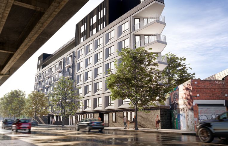 Located at 280 Meeker Avenue, the eight-story apartment building consists of studios, one-, two- and three-bedroom units — 21 of which are designated as affordable.