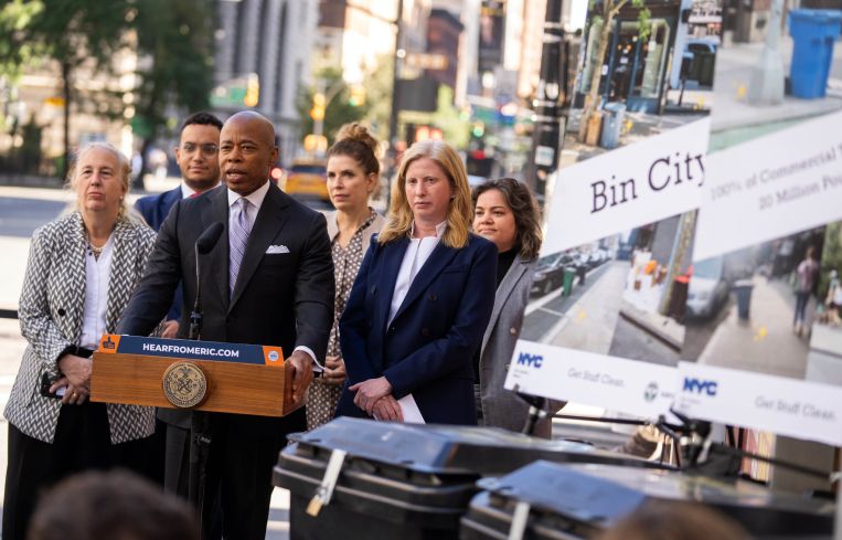 Adams and New York City Department of Sanitation Commissioner Jessica Tisch announced Tuesday that all commercial trash in the city — which totals roughly 20 million pounds per day — must be set out in secure, lidded containers starting March 1, 2024.