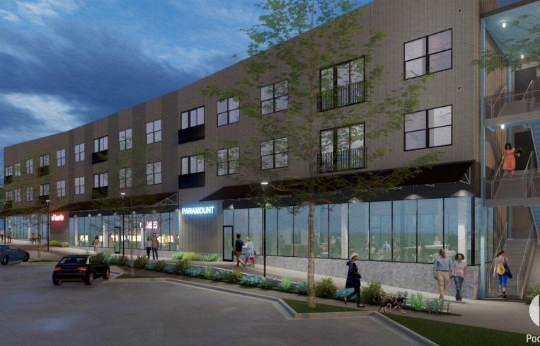 The $32.5 million development just west of Interstate 65 will feature 10,000 square feet divided between local restaurants El Barrio and Paramount, with private event space sandwiched between the two. There will be 18 two-bedroom apartments for rent above the restaurants and 48 townhomes for rent on the property. The project is slated for completion in late 2024