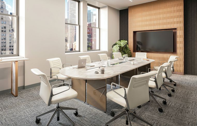 The 18-story property got new windows, and its limestone facade was refreshed. Then, in early 2022, came a gut renovation, with a new heating and cooling system, an extension on 43rd Street to allow for a larger lobby, two new elevator cores, an amenity floor, and full-floor prebuilt suites.