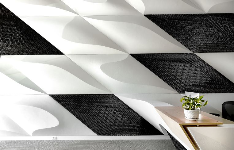 The new 3D interiors product uses a proprietary manufacturing process to create complex architectural designs that enhance an interior space with custom wall panels finished with a suite of colors and textures.