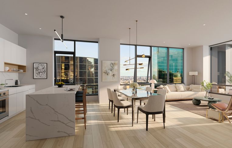 Construction started in early 2022 and is set to wrap in the spring of 2024. Marketing began in early December for the apartments, and tenants are expected to start moving in immediately. Vanbarton has started calling the property “Pearl House,” with studios starting around $3,000 a month. However, the Department of Buildings recently issued a temporary certificate of occupancy for the second through 14th floors, even with the top half of the building still under construction, according to Fuller.