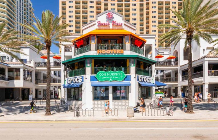 The three-story asset at 17 S Fort Lauderdale Boulevard (also known as Route A1A) is accessible from the beach and connected to the Marriott Beach Place Towers. Tenants at the property include national chains such as Haagen Daaz, Subway and a CVS Pharmacy as well beachfront specialities Lulu’s Bait Shack and party venues Fat Tuesday and Hooters, the last of which occupies the full third floor.