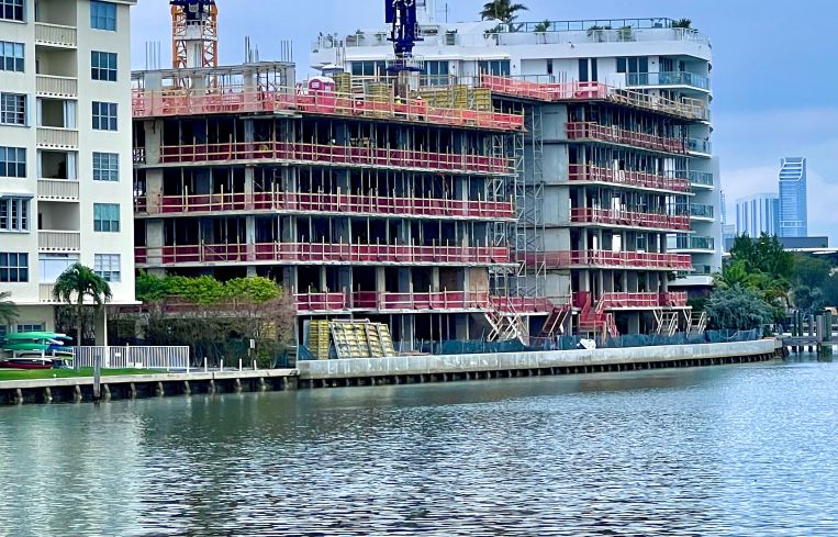 The eight-story waterfront development will house 68 units at 9201 East Bay Harbor Drive. Construction at the sold-out development has been underway since April 2022, and is scheduled to be completed in 2025. The second phase of the project, called La Baia North, has yet to break ground.