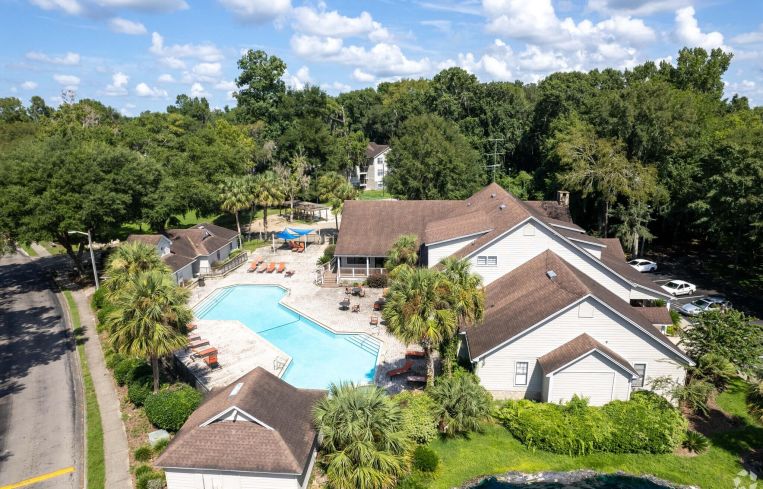 Located at 1000 SW 62nd Boulevard on 31.74 acres about four miles from the University of Florida, the property last underwent renovations around a decade ago. Its amenities include two swimming pools, workstation cubicles, a game room, a media room, rentable event space, a fitness center, an indoor racquetball, a half-court basketball court, a sand volleyball court and a dog park.