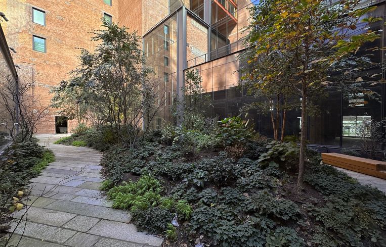 Despite the addition, the footprint of the building remains the same, because CookFox has carved a hole in the middle of the building for an internal, landscaped courtyard.