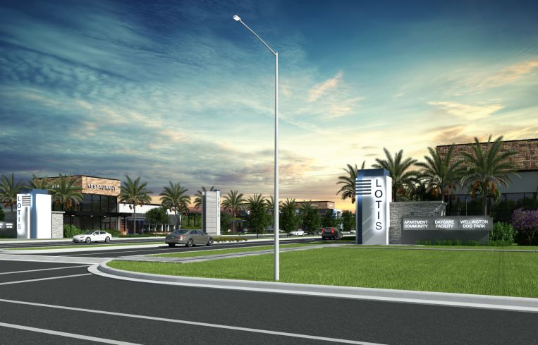 The property is part of a larger 64-acre mega-development already underway called Lotis Wellington. Some of the ground-floor development was facilitated by a $90 million round of financing for land acquisition, entitlements and pre-construction. Once completed, the project will bring 61,375 square feet of commercial space and a 60,000-square-foot medical office building to a site on State Road 7 north of Wellington Regional Medical Center.