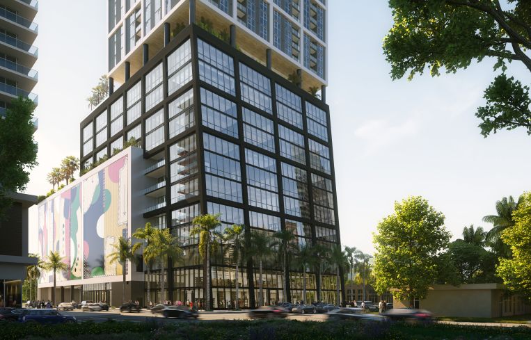 The base of the tower will extend the full length of the parcel, and include 10 stories of office space above the ground-floor lobby, capped with an amenity floor and pool deck. The narrower multifamily portion will begin on the 13th floor, so every apartment will have views of nearby Biscayne Bay and the surrounding area. The wraparound amenity deck will divide the two portions visually, and the top floor will feature coworking spaces and a rooftop deck.