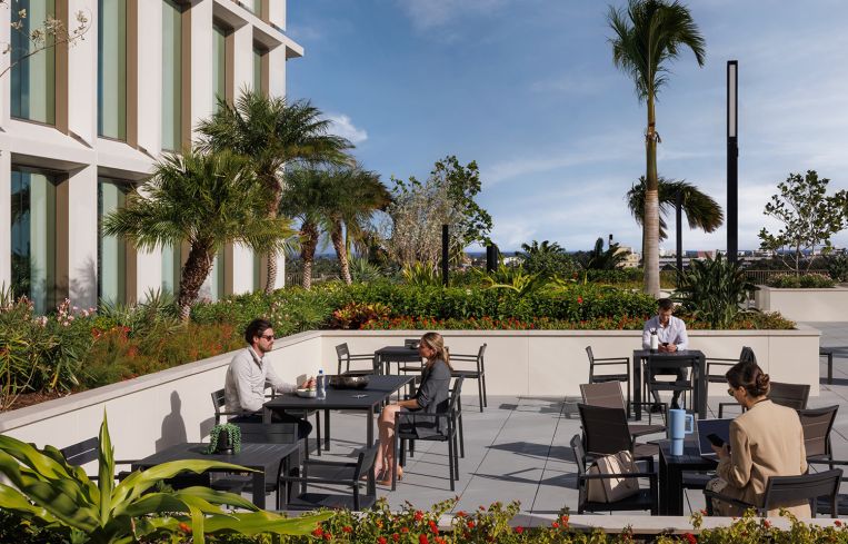 “We’re selling a lifestyle,” said Jordan Rathlev, a senior vice president of development at Related Ross. “We thought about it and moved the core of the building to the west to preserve the views east, north and south. Now, you get off the elevator, and you look around. The tenants have all this natural light … and wonder why they’re in the office.”