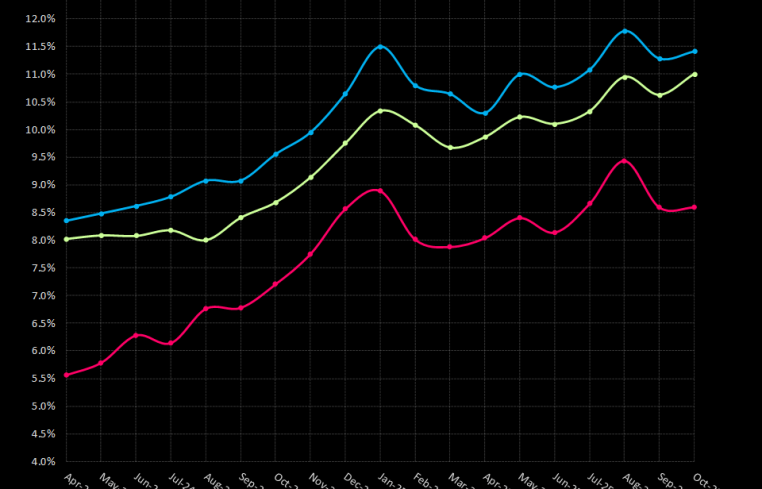 Commercial mortgage-backed securities (CMBS) investors tracking distress signals saw the CRED iQ distressed rate rise 13 basis points (bps) in October to 11.41 percent, reversing half of September’s 50 bps decline and inching closer to the cycle peak.